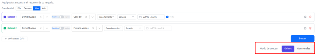 Antes de visualizar cualquier dato, debe configurar los filtros para especificar qué información desea analizar. El sistema de filtros es una herramienta poderosa que le permite segmentar los datos de múltiples maneras.