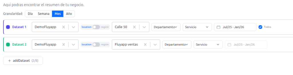 - Agregar múltiples sucursales para comparar su rendimiento lado a lado
