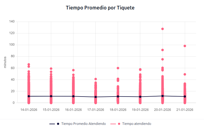 5. Análisis de tiempos de atención (Tiempo Promedio por Tiquete)