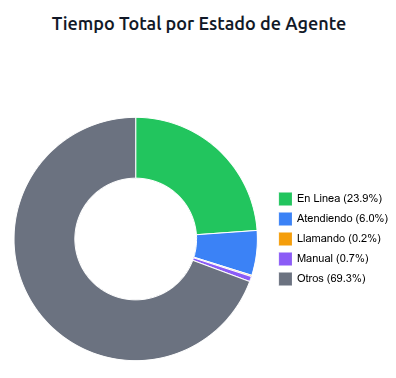 3. T. Total (Tiempo Total de Atención): Se suman todos los minutos que el agente estuvo atendiendo clientes. Se muestra en formato fácil de leer (horas:minutos:segundos).